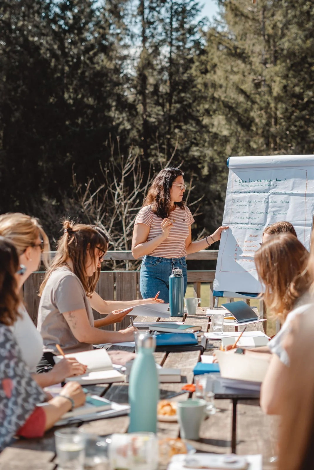 Wir starten jeden Morgen mit 60-90 Minuten gemeinsamem Workshop bevor wir ins Co-Working und die 1:1 Sessions gehen. Die Themen werden gemeinsam nach dem Bedarf der Teilnehmerinnen festgelegt.